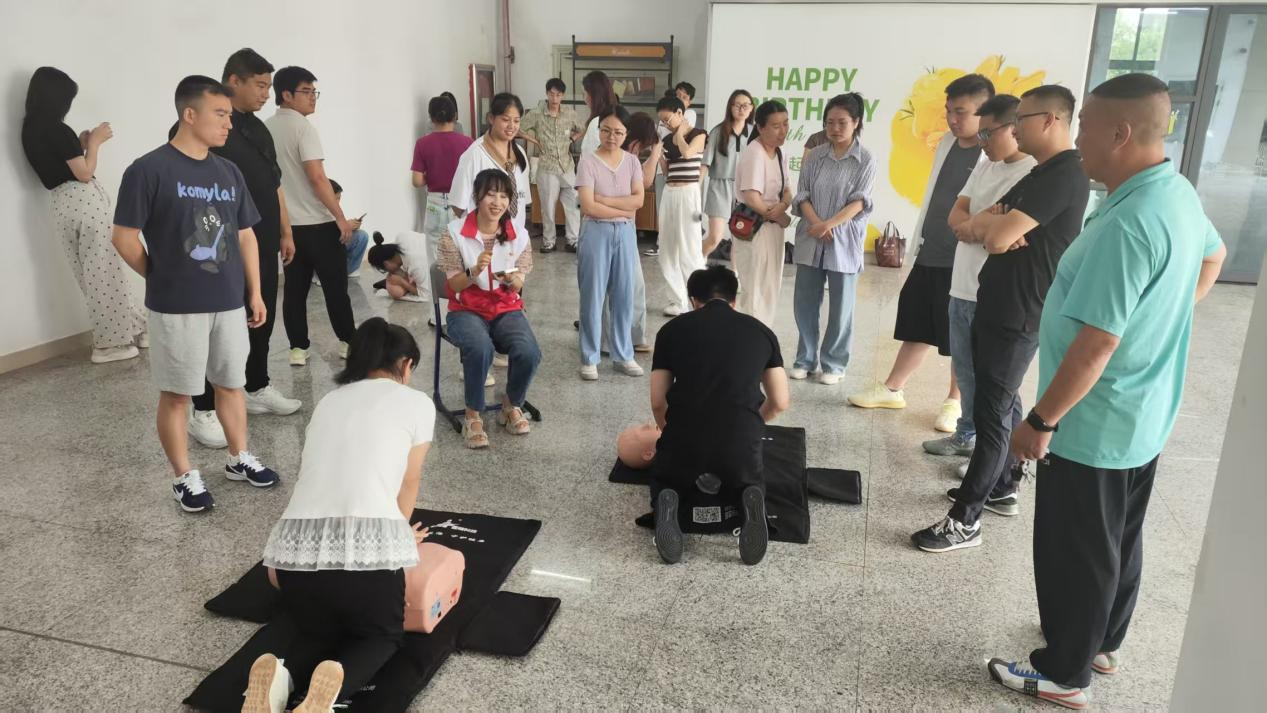 在理論教學環節,廖紅蓮專家結合真實案例,著重強調急救“黃金4分鐘”的重要性,深入淺出地講解成人心肺復蘇的關鍵要點,包括按壓位置(兩乳頭連線中點)、頻率(100-120次/分鐘)及深度(5-6厘米),并通過現場演示,詳細展示AED設備操作流程,讓抽象的急救知識變得通俗易懂。