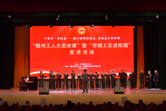 江西省五一勞動獎章獲得者余麗霞講述了工運領袖陳贊賢的革命事跡,帶領師生重溫工人階級的奮斗歷史。活動穿插的文藝表演將現場氛圍推向高潮。贛州市職工合唱團帶來的表演唱《勞動最光榮》、合唱《世界贈予我的》,以藝術形式傳遞勞動情懷。