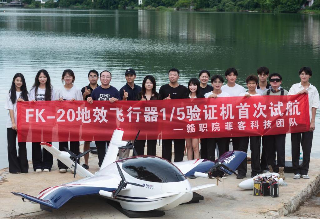 隨后,學生分組參與飛行器結構組裝,親手體驗航空制造的關鍵流程并完成地效飛行器的組裝,師生團隊前往上猶縣陽明湖,參與菲客航空最新研發的地效飛行器試飛。這款外形酷似“掠水海豚”的創新飛行器,利用地面效應原理實現貼水巡航,兼具飛機與船舶的特性。試飛過程中,飛行器在湖面平穩滑行,展現出優異的技術性能,引發師生對低空經濟應用場景的廣泛討論。