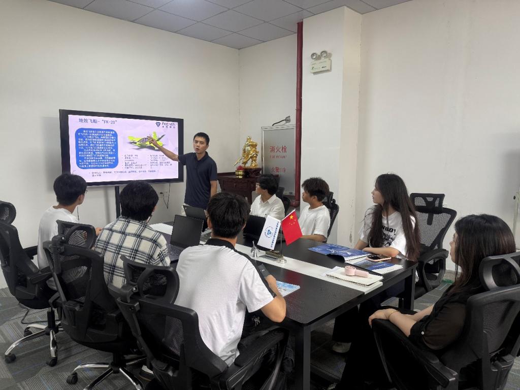 在長期合作開展地效飛行器項目研發的基礎上,師生團隊此次到訪受到菲客航空科技公司的高度重視。負責人王子欣親自接待實訓團隊,針對低空經濟新賽道,公司重點展示了包括地效飛行器在內的核心技術突破與商業化應用場景。在長達兩小時的交流中,校企雙方圍繞航空科技企業的商業模式創新、技術轉化路徑等議題進行了深度研討,師生團隊結合前期項目經驗提出了多個具有實踐價值的建議。
