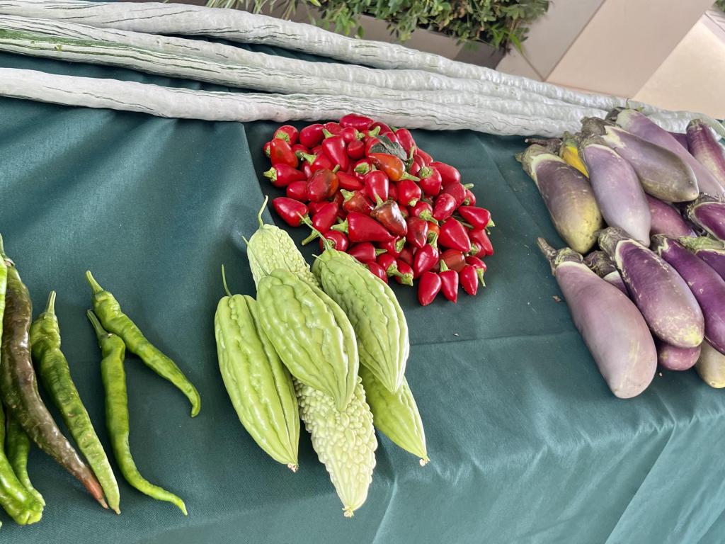 教學成果展按園林、園藝、農檢三大專業分設展區,有剛剛從大棚采摘的蛇瓜、辣椒、茄子;現烤的面包、也有豐富的花藝作品和園林景觀手繪圖等。通過學生實訓作品,集中展示了各專業在教學、實踐等方面的特色成果。