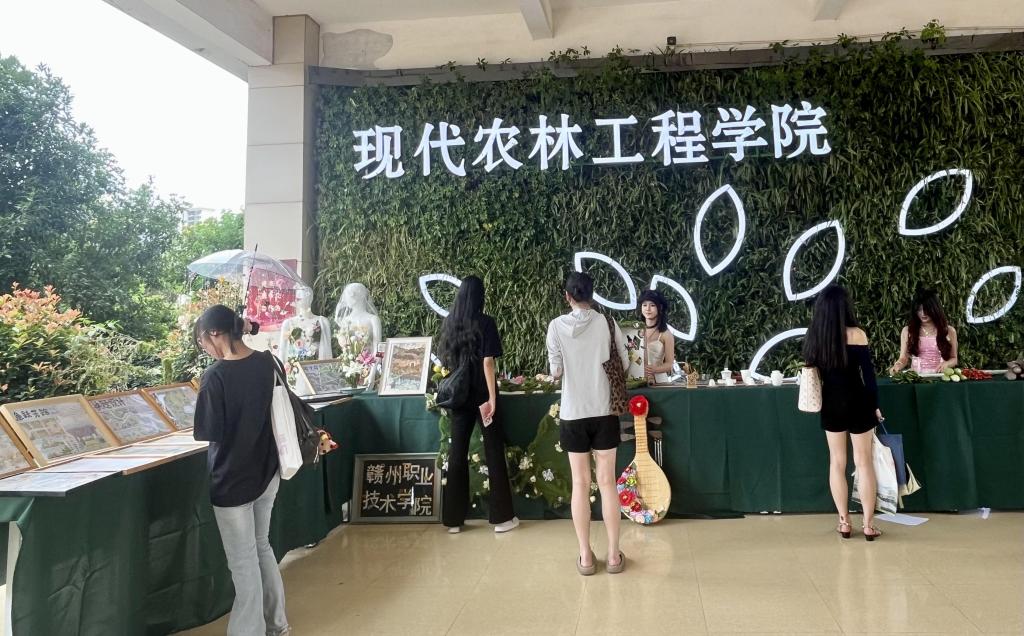 走進學院,一場“沉浸式”的農林成果展已悄然鋪展。路旁的麥穗、憨態可掬的奶龍、一幅幅園林景觀效果圖,以及專門制作的鮮花拱門,串聯起學子們在農林學院的青春回憶。