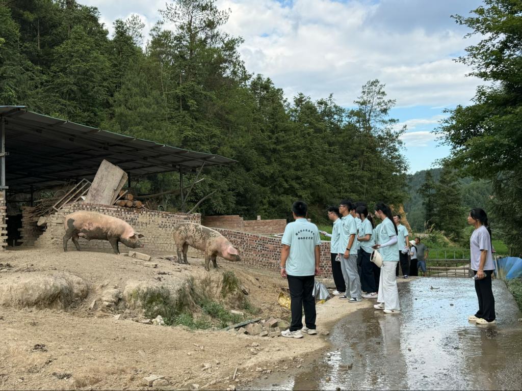 7月1日下午 ,在牛、羊養殖場實地調研期間,團隊成員們參觀了白鶴嶺山莊山羊養殖基地并協助驅趕山羊,讓它們登山自主覓食;農莊負責人袁長美與團隊成員們分享自己的獨特創業歷程,讓大家深受觸動。隨后又深入了解了本地黃牛、跑山豬的養殖情況,近距離感受綠色養殖模式的獨特魅力。