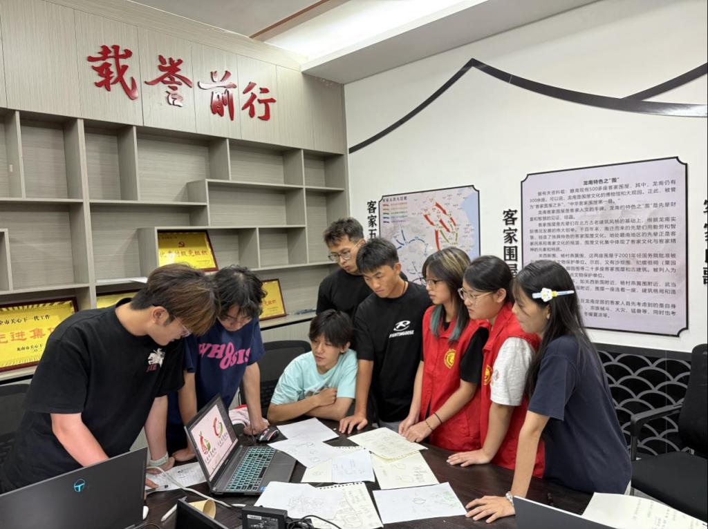 在"世界客家第一村"崗上村,師生們從圍屋建筑的穹頂弧線中提煉美學符號,從織帶工藝的經緯交錯中感悟匠心傳承,將客家元素創新性融入鄉村標識設計,讓沉睡的傳統文化在現代設計中煥發新彩。