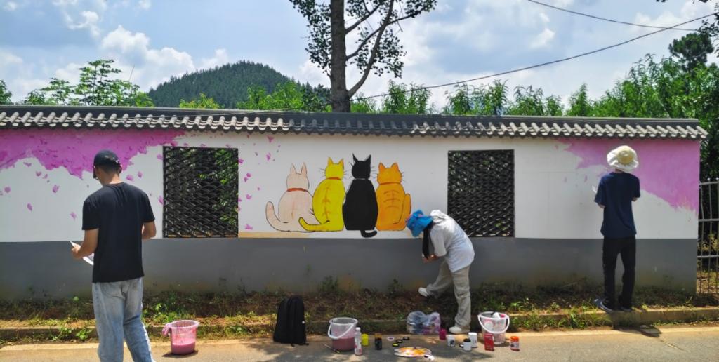 為更深入理解鄉村肌理,隊員們走進田間參與農事勞作,在親身體驗農耕不易的過程中,積累了充滿生活氣息的創作素材。隨后,他們將這些感悟融入夢里桃鄉景區的墻繪創作,把鄉村風光、民俗風情、特色產業等元素轉化為生動畫面,既美化了鄉村環境,又為當地文旅發展注入視覺吸引力。