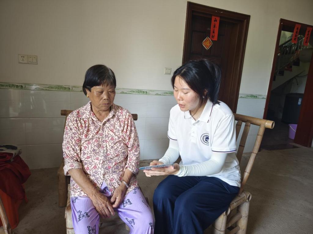 7月7日,實踐隊在村干部的引導(dǎo)下分組入戶,為村里的老人們送上一系列暖心關(guān)懷。交通安全宣講用生動案例和通俗語言,讓老人們輕松掌握基本交通規(guī)則,出行安全意識顯著提升;防詐騙宣講結(jié)合常見案例拆解詐騙套路,幫助老人練就“火眼金睛”;健康養(yǎng)老知識普及中,隊員們?yōu)槔先藴y量血壓,耐心解答養(yǎng)生疑問。這些活動不僅帶來實用知識與健康關(guān)懷,更讓老人們深切感受到社會的溫情。這既是積極響應(yīng)國家應(yīng)對人口老齡化戰(zhàn)略的生動實踐,也為提升鄉(xiāng)村老年人生活質(zhì)量與安全感添磚加瓦。