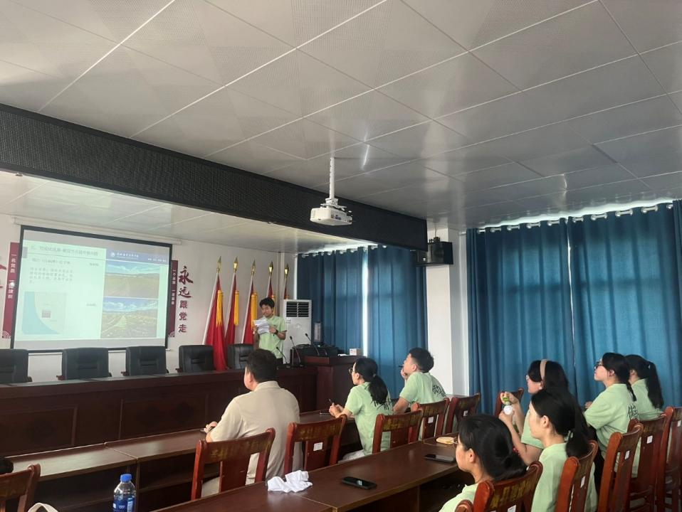 座談會上,助農團負責人黃遙遙對本次實踐活動進行了全面總結匯報,內容涵蓋產業及農旅資源調研、勞動實踐淬煉、稀土研學參觀、文明實踐服務等多個關鍵領域。園林組負責人章鵬輝則聚焦實踐服務的可視化成果展開展示,其中包括景觀節點提升意向圖設計、《白澗村產業及旅游資源調研報告》、抖音媒體宣傳成果、《儲潭鎮宣傳片》,以及文明實踐站關愛留守兒童活動和防溺水宣傳活動等豐富內容,全方位呈現了助農團的實踐成效。