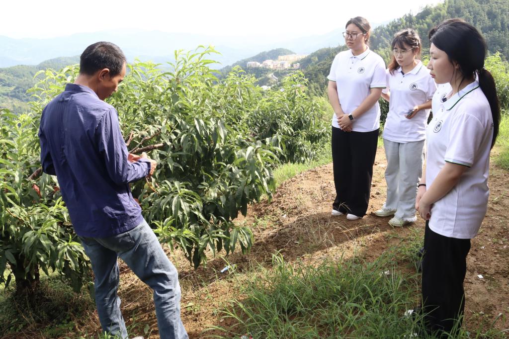 志愿服務隊前往遂川縣左安鎮桃源梯田,深入錦繡黃桃種植基地與梯田水稻產區。在黃桃種植園,志愿者們向種植戶鄧師傅討教錦繡黃桃的種植“密碼”,從套袋、剪枝的實操技巧到“線上+線下”的銷售模式,從海拔地理優勢帶來的果品特色到科學種植的關鍵技術,在理論與實踐的碰撞中直觀感受特色農業的發展脈絡。據悉,鄧師傅10畝黃桃基地的200棵果樹即將于7月末進入采摘期,其果品因品質優良、風味濃郁已基本實現供不應求。