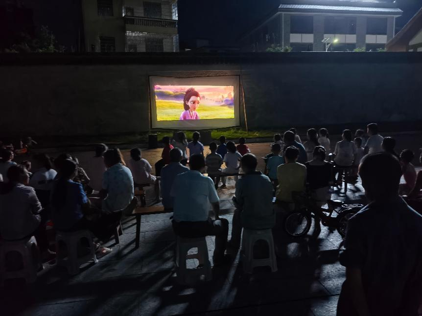 傍晚時分,“電”亮“心”程先鋒隊在村文化廣場架起幕布,為村民放映動畫電影《哪吒》。精彩的劇情吸引了大批村民,特別是孩子們前來觀看。