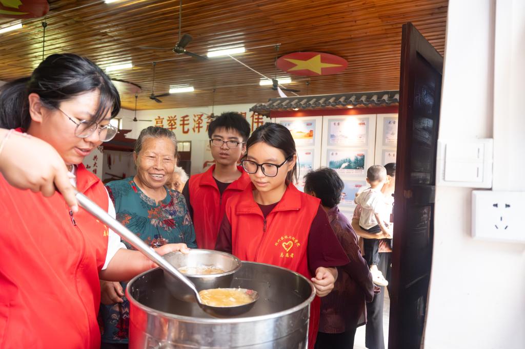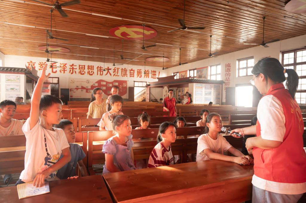 民生關懷同樣細膩入微。隊員們走訪村民李奶奶家時,留意到部分家長因農事繁忙,難兼顧孩子陪伴與安全。于是,“童心港灣”在共大禮堂一角啟幕,成為孩子的歡樂天地。考慮到鄉村安全知識普及需求,隊員們精心籌備安全講座,從辨別變質食材、講解農藥殘留危害,到普及防水放電要點,用通俗語言為孩子與村民筑牢安全防線。課后,一碗碗溫熱的蓮子銀耳羹送到老人手中,暖胃更暖心。在“童心港灣”,彩色粘土捏出鮮活荷塘,紅色童謠唱出信仰力量,“你畫我猜”“數字競猜”等趣味游戲,讓知識與歡樂并行,安全意識融入成長軌跡。