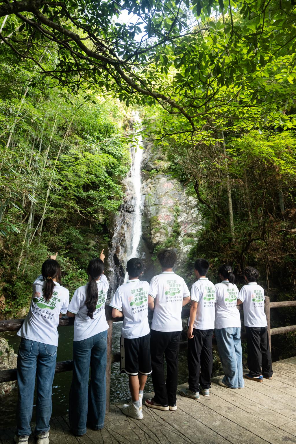 為了更直觀、深入地了解生態現狀,隊員們跟隨賴志賓沿著蜿蜒的溪流走訪。一路上,兩岸草木蔥蘢,像是大自然為溪流編織的綠色帷幕,溪水清澈見底,水底的鵝卵石清晰可見,陽光灑落,溪水泛起粼粼波光,宛如靈動的銀絲帶。隊員們沿著溪流,實地調研水質保護情況,查看植被養護成效,還深入了解生態補償政策落實細節。每到一處,都認真記錄“禁漁禁伐”政策如何守護生態平衡,“垃圾分類”舉措怎樣從源頭減少污染,這些長效措施的實施成效,都被隊員們一一收錄,成為生態保護工作的珍貴素材。