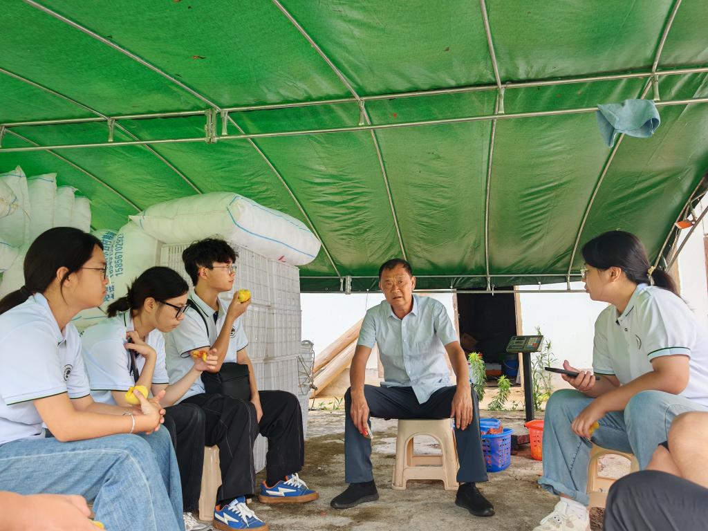 在黃桃基地里,種植大戶蔣大華向隊員們詳細介紹黃桃種植知識,當地氣候、土質適宜黃桃生長,種植面積達百余畝,黃桃成為村民增收致富的“黃金果”。同時,他指出基地因山區地形運輸成本高,黃桃成熟快易爛。隊員們借此機會發揮園藝專業優勢,用“產地簡易預冷”減10%左右爛損、繪制“成熟熱力圖”提采摘效率,將課堂理論用于助農實踐,以青春助農,在實踐中讀懂鄉村。