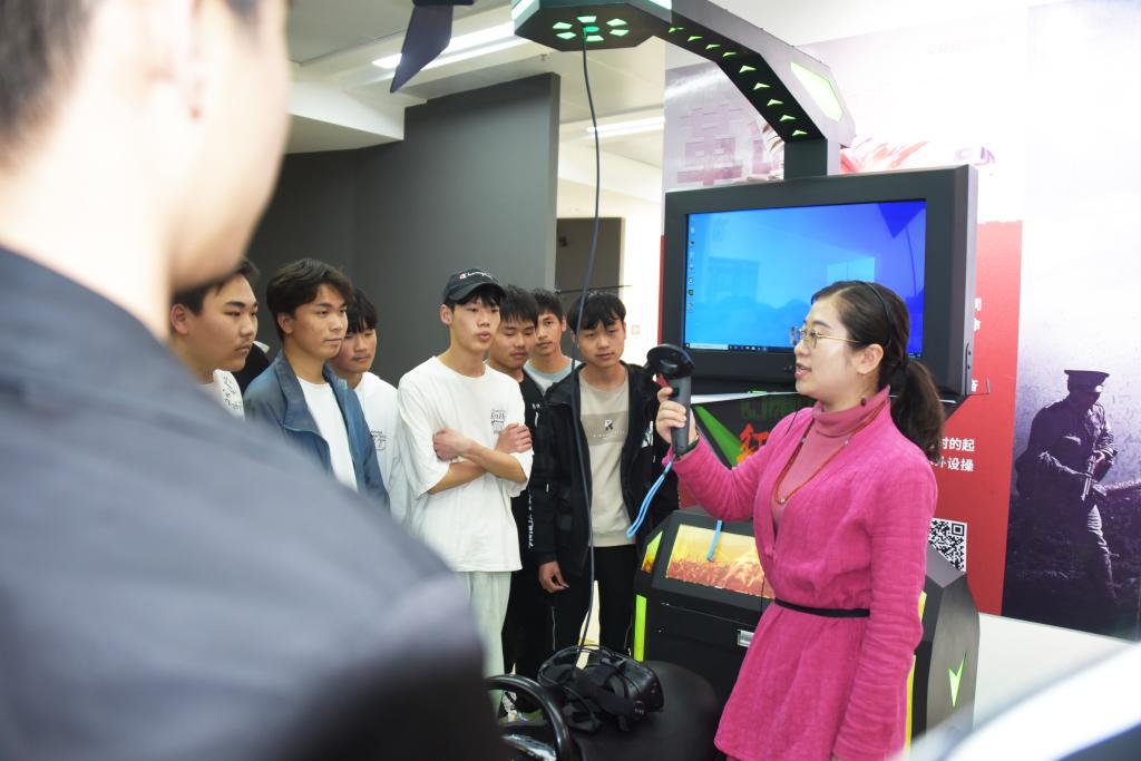 在VR實踐體驗教學中,學生們戴上VR眼鏡,自由操控著手柄,交互控制前行方向,身臨其境般走進長征的那段史詩般的歲月,學習黨史,追憶革命崢嶸歲月,汲取砥礪前行的力量。