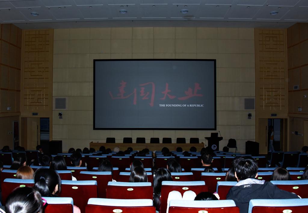 4月14日晚上,黨委書記鄒志華、分管領導湯曉軍,宣傳統戰部、學生工作處、團委、各黨支部等相關人員,以及部分教師代表,一起參與觀看紅色電影《建國大業》。