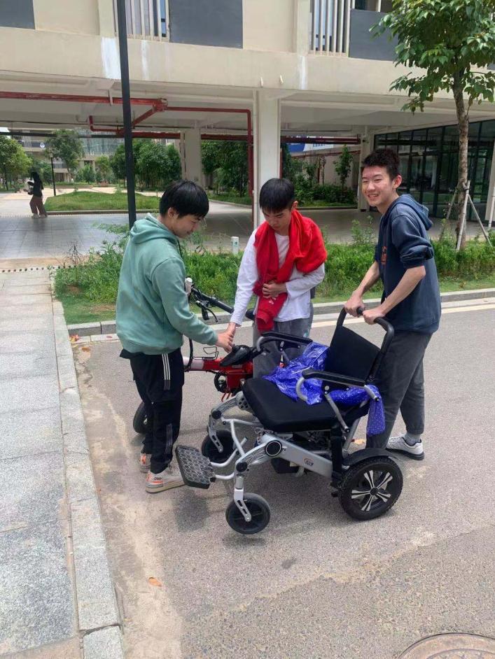 由于腿腳不便,對彭安邦同學而言,每天上下課,從寢室到教師的路是一段漫長的路。在夏老師的指導下,同學們會自發的伴彭安邦一同上下課,每天幫忙推著他的輪椅一起走,找他談心時彭安邦感嘆道:有學院的關心、有老師的教誨、有同學的幫助,未來的人生之路一定是充滿陽光與幸福!