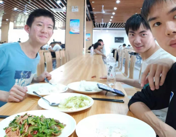 早餐有同學幫他帶包子或者面包,午餐和晚餐安排班干部和學生與彭安邦同學一同吃飯,同學們主動幫他盛飯,大家的菜放在一起吃,其樂融融。