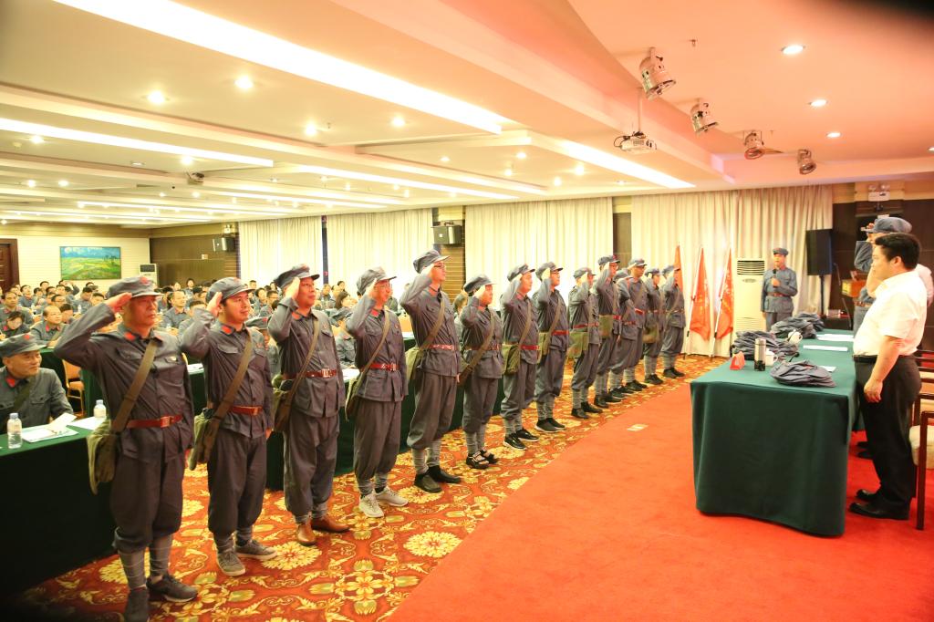 開班儀式上,井岡山正行干部教育培訓基地特聘教授匡顯楨致歡迎詞,熱烈歡迎三校黨員干部到井岡山接受紅色教育。隨后進行了授帽儀式和授班旗儀式。