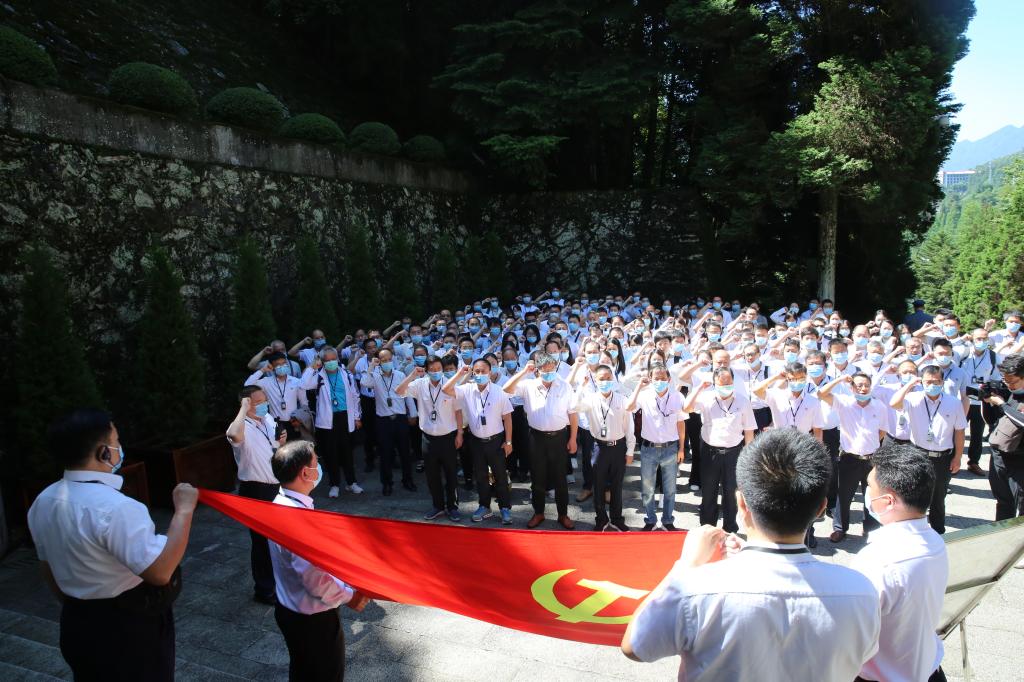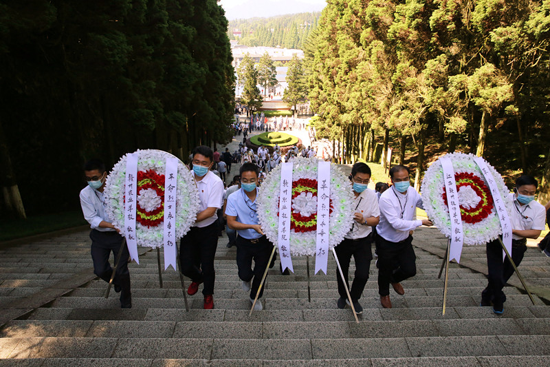 在井岡山革命烈士陵園內,全體黨員懷著無比崇敬的心情來到這里敬獻花圈,在烈士紀念堂深切祭奠緬懷革命先烈。