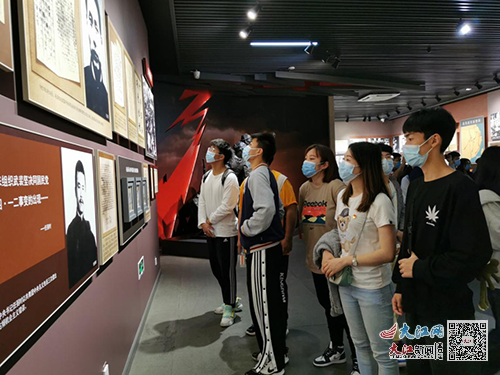 大江網/贛州頭條客戶端訊 通訊員鄭芝君、黎瑋琛報道:為了更好地將黨史學習教育落到實處,5月18日,馬克思主義學院的老師帶領4名青年學生赴南昌八一起義紀念館,通過“紅色走讀”形式開展黨史學習教育。