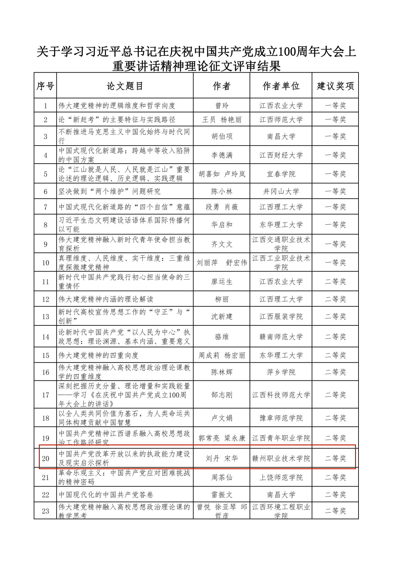關于學習習近平總書記在慶祝中國共產黨成立100周年大會上重要講話精神理論征文評審結果的公示http://jyt.jiangxi.gov.cn/art/2021/11/18/art_25824_3741187.html