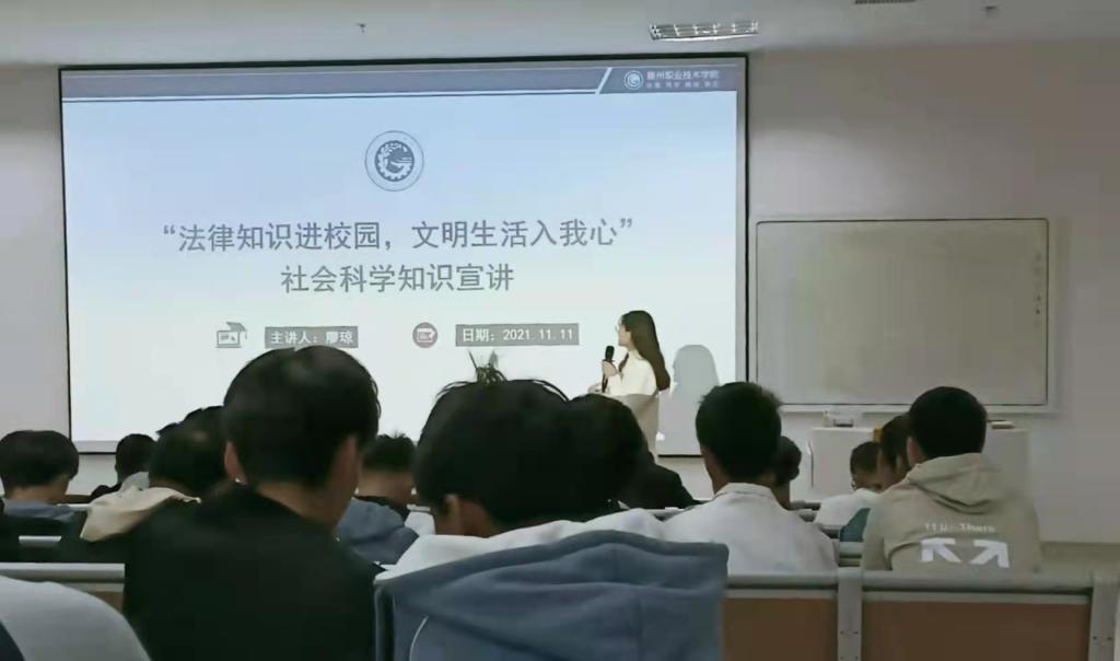 廖瓊老師作《“法律知識進校園,文明生活入我心”社會科學知識》宣講,引導同學們做一名知法、懂法、守法的文明大學生。