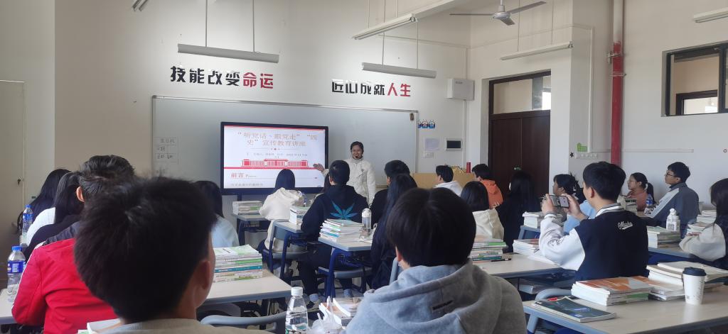 胡麗萍老師作《“聽黨走、跟黨走”“四史”宣傳教育》宣講,脈絡清晰,激發了同學們學習“四史”的熱情。