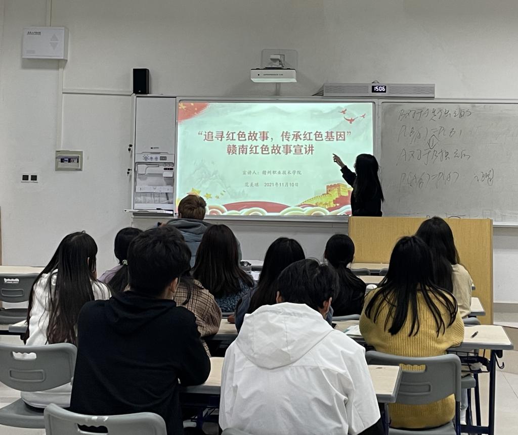 范美琪老師作《“追尋紅色足跡,傳承紅色基因”贛南紅色故事》宣講,用一個個感人肺腑的贛南紅色故事,讓在座的同學們感受到幸福生活的來之不易。