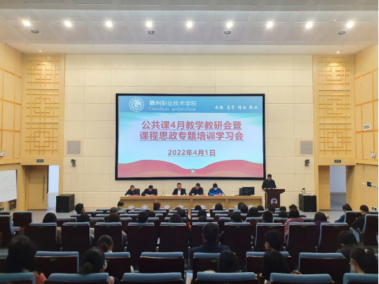 4月1日下午,贛州職業(yè)技術(shù)學院(贛州農(nóng)業(yè)學校、江西贛州技師學院)在圖書館一樓報告廳召開公共課4月教學教研會暨課程思政專題培訓學習會,分管領導歐陽榮華出席會議并講話,會議由馬克思主義學院負責人宋華主持,贛州職業(yè)技術(shù)學院(贛州農(nóng)業(yè)學校、江西贛州技師學院)相關(guān)職能部門負責同志和全體公共課教師參加會議。