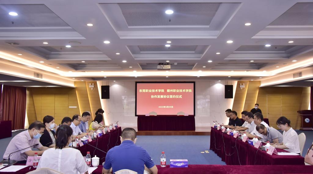 6月20日上午,學院黨委書記溫學延帶隊前往東莞職業技術學院,與東莞職業技術學院黨委副書記、校長賀定修,黨委委員、副校長楊云奇及相關部門負責人進行座談交流,并與東莞職業技術學院簽訂協作發展協議。
