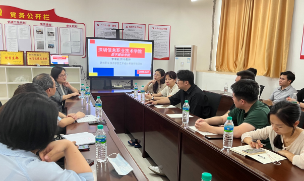 6月22日下午,深圳信息職業技術學院數字傳媒學院骨干教師李湘皖到藝術設計系開展座談交流,座談會由藝術設計系副主任李能巡主持,系部部分教師參加座談。